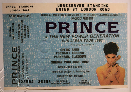 PRINCE - 1992 Celtic Park , Parkhead, Glasgow framed ticket giclee print