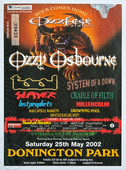 OZZY OSBOURNE - 2002 “ Ozzfest 2002 ” Donington Park framed ticket giclee print