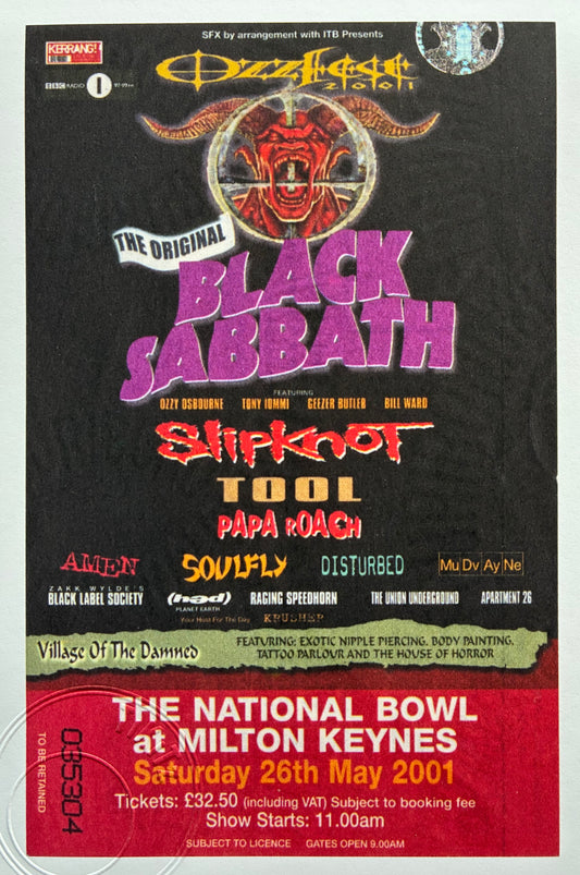 BLACK SABBATH - 2001- “ Ozzfest 2001 ” Milton Keynes framed ticket giclee print