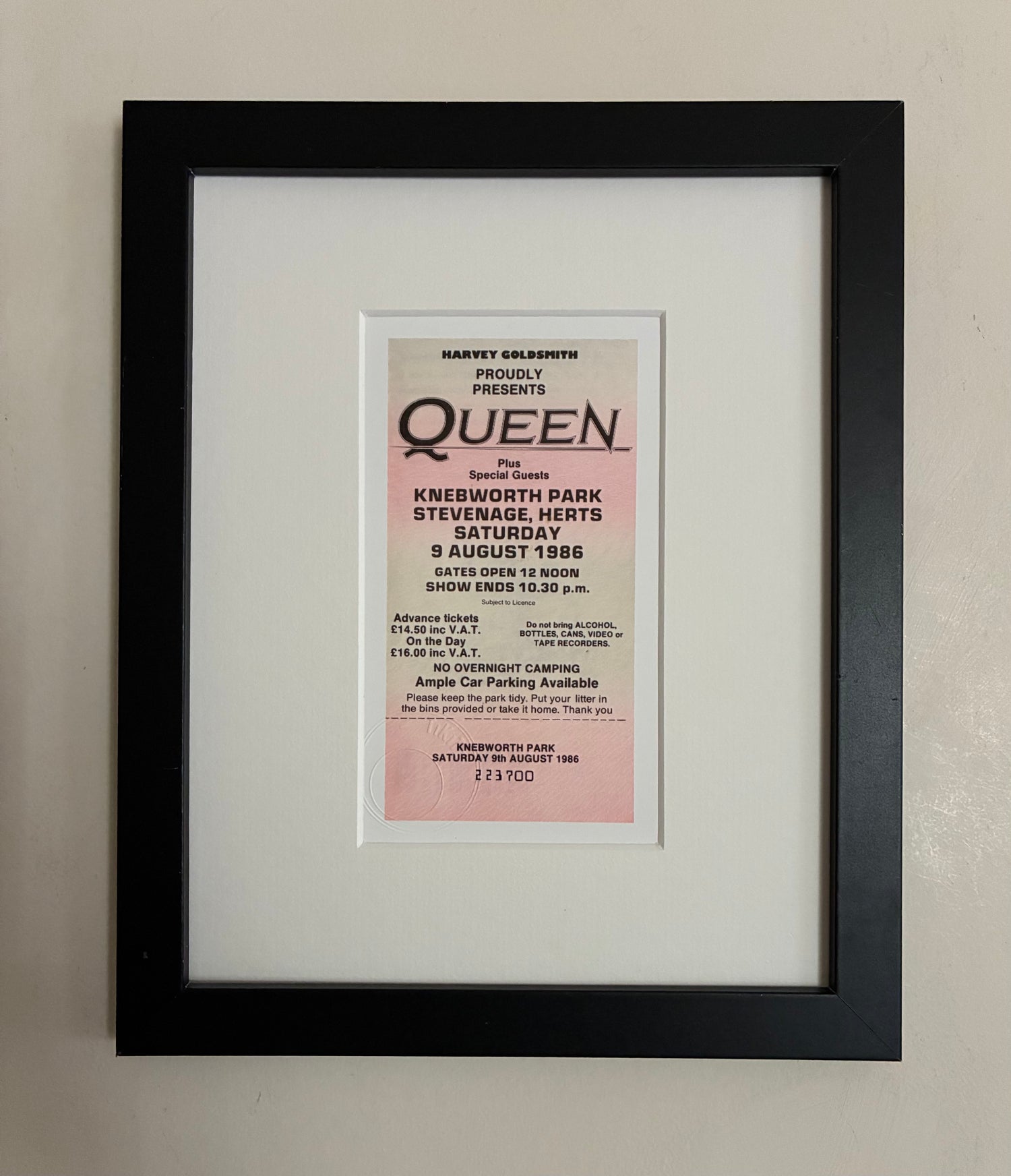 QUEEN - 9/8/1986 Knebworth Park framed ticket giclee print