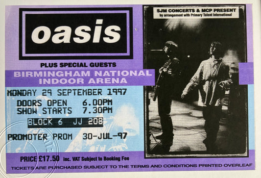 OASIS - 29/9/ 1997 Birmingham National indoor Arena framed ticket giclee print