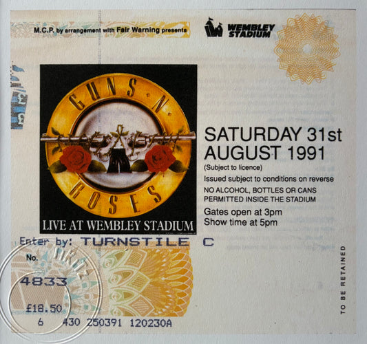 GUNS N ROSES- 1991 Wembley Stadium framed ticket giclee print
