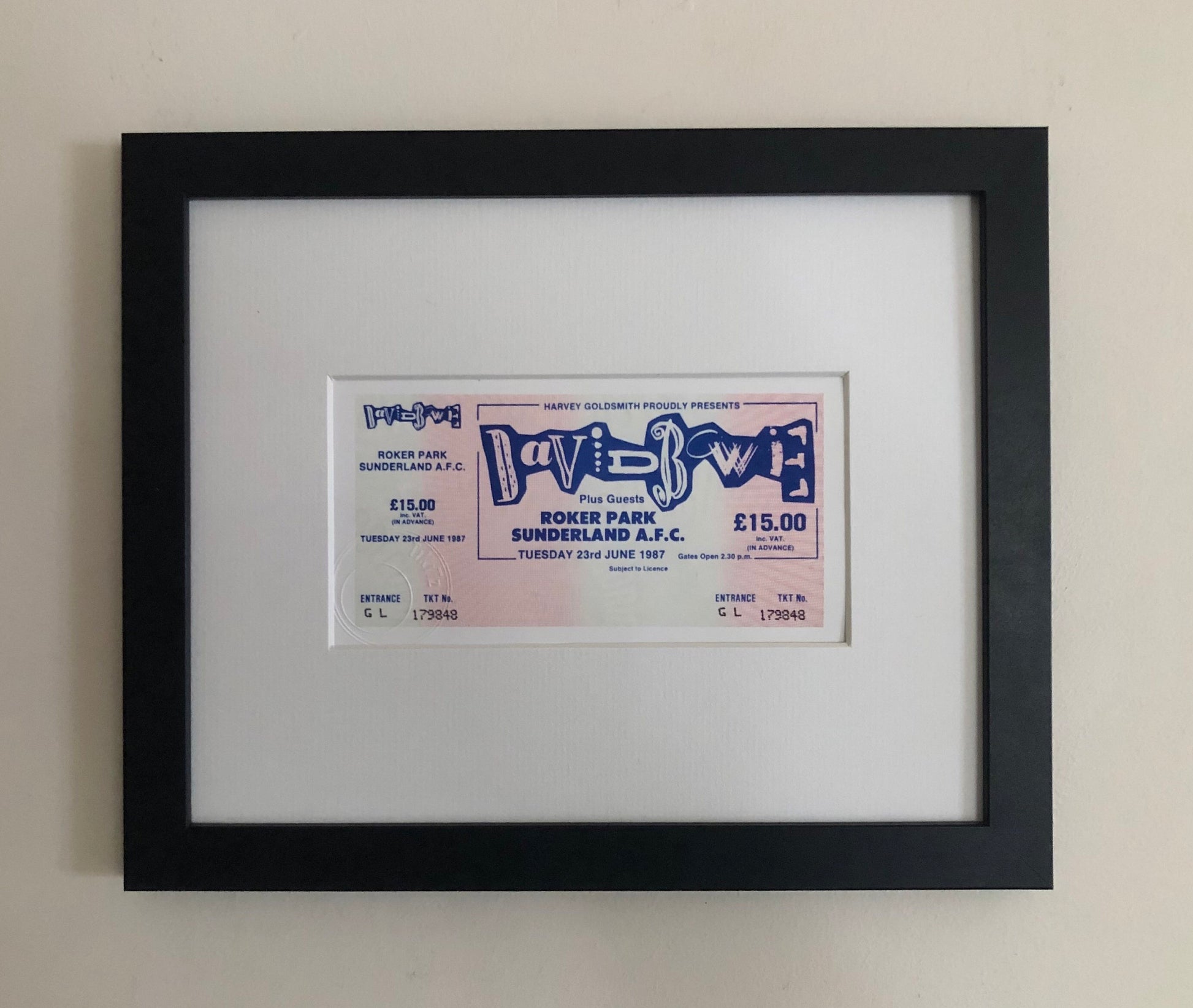 DAVID BOWIE - 1987 “Glass Spider tour” Roker Park, Sunderland AFC framed ticket giclee print
