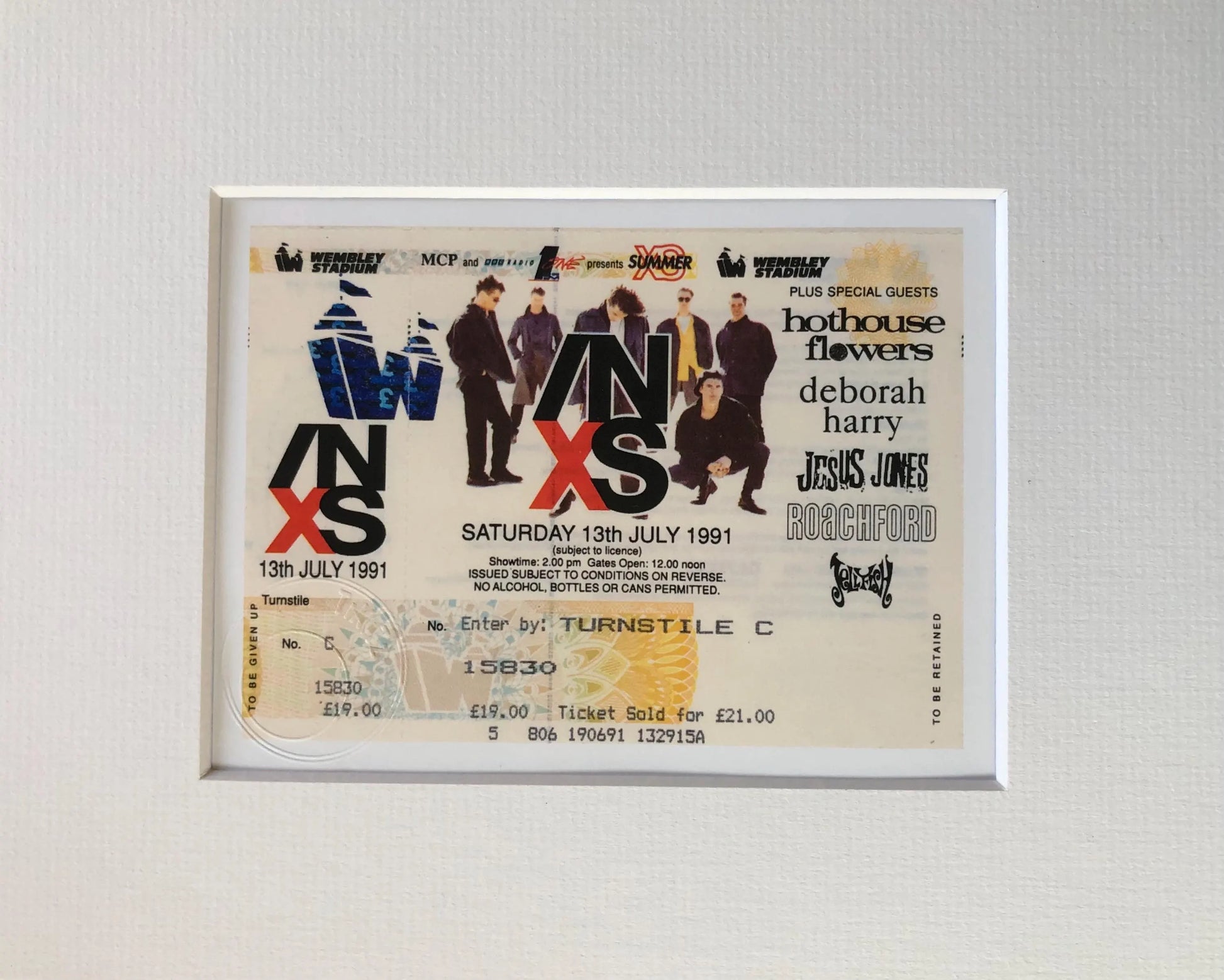 INXS - 1991 Wembley Stadium , London framed ticket giclee print