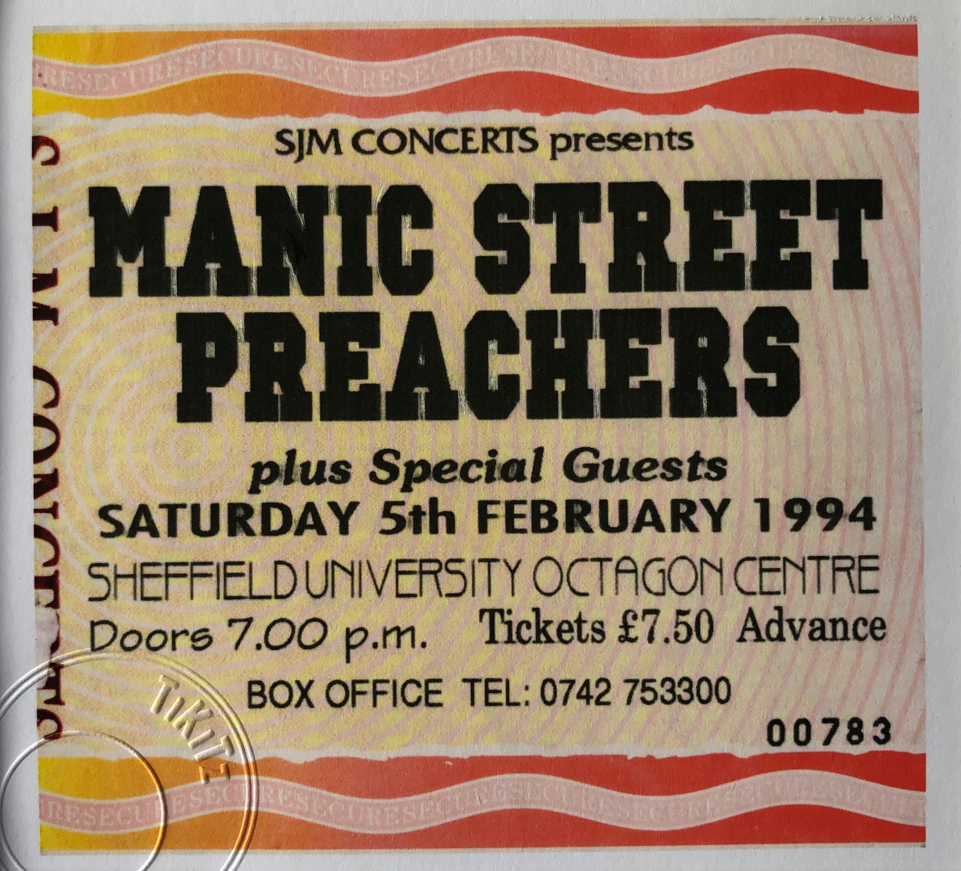 MANIC STREET PREACHERS - 5/2/1994 Sheffield University framed ticket giclee print