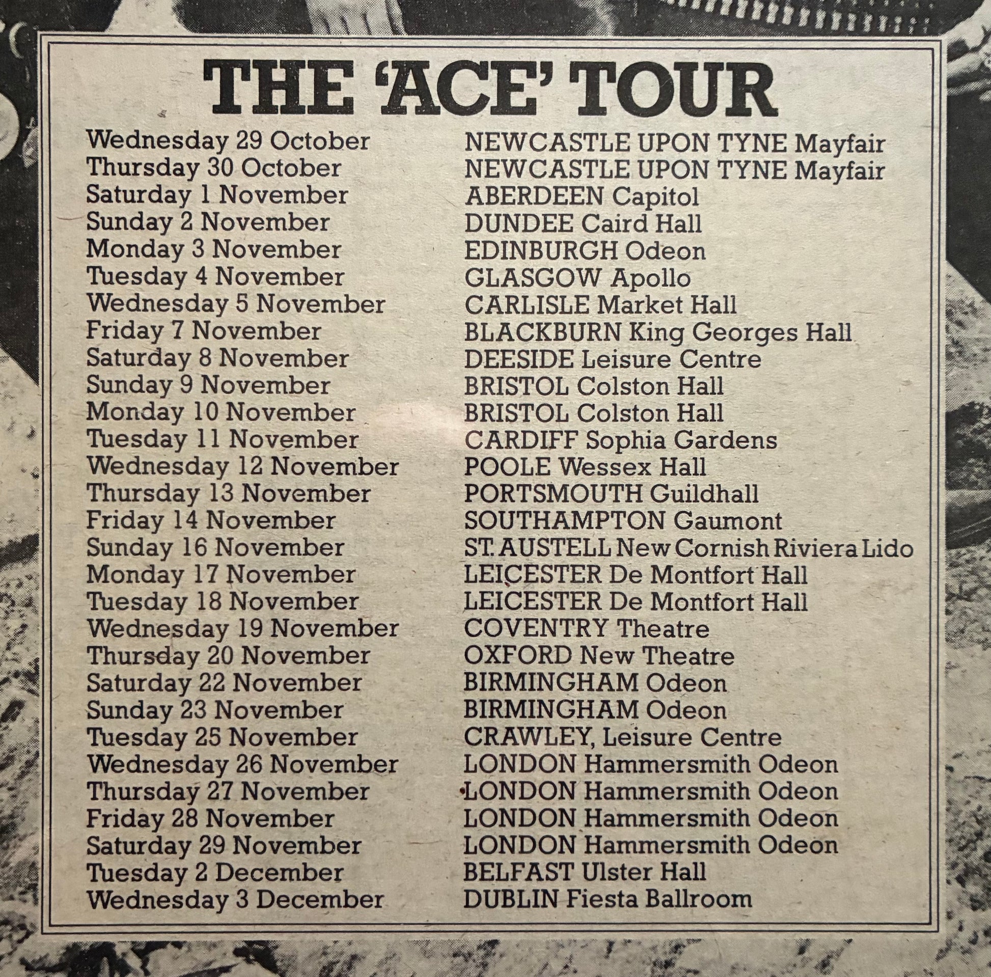 26/11/1980 Hammersmith Odeon , London concert ticket and corresponding original NME tour advert .