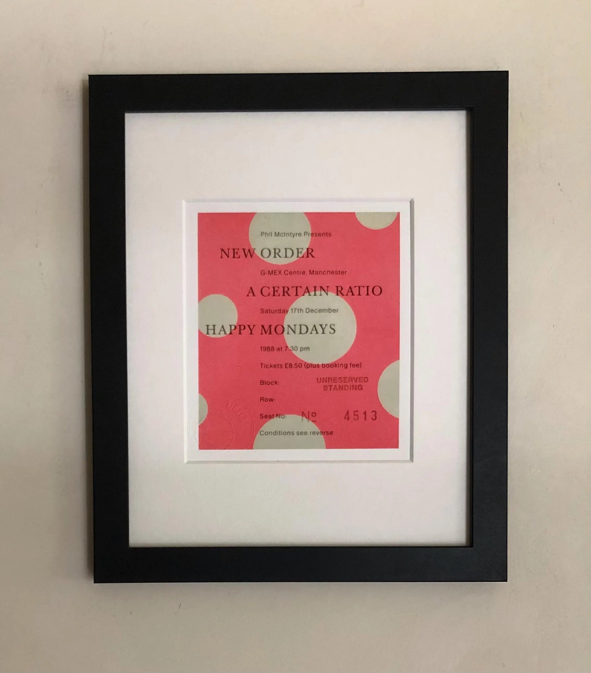 NEW ORDER / HAPPY MONDAYS - 1988 G Mex Centre, Manchester framed ticket giclee print