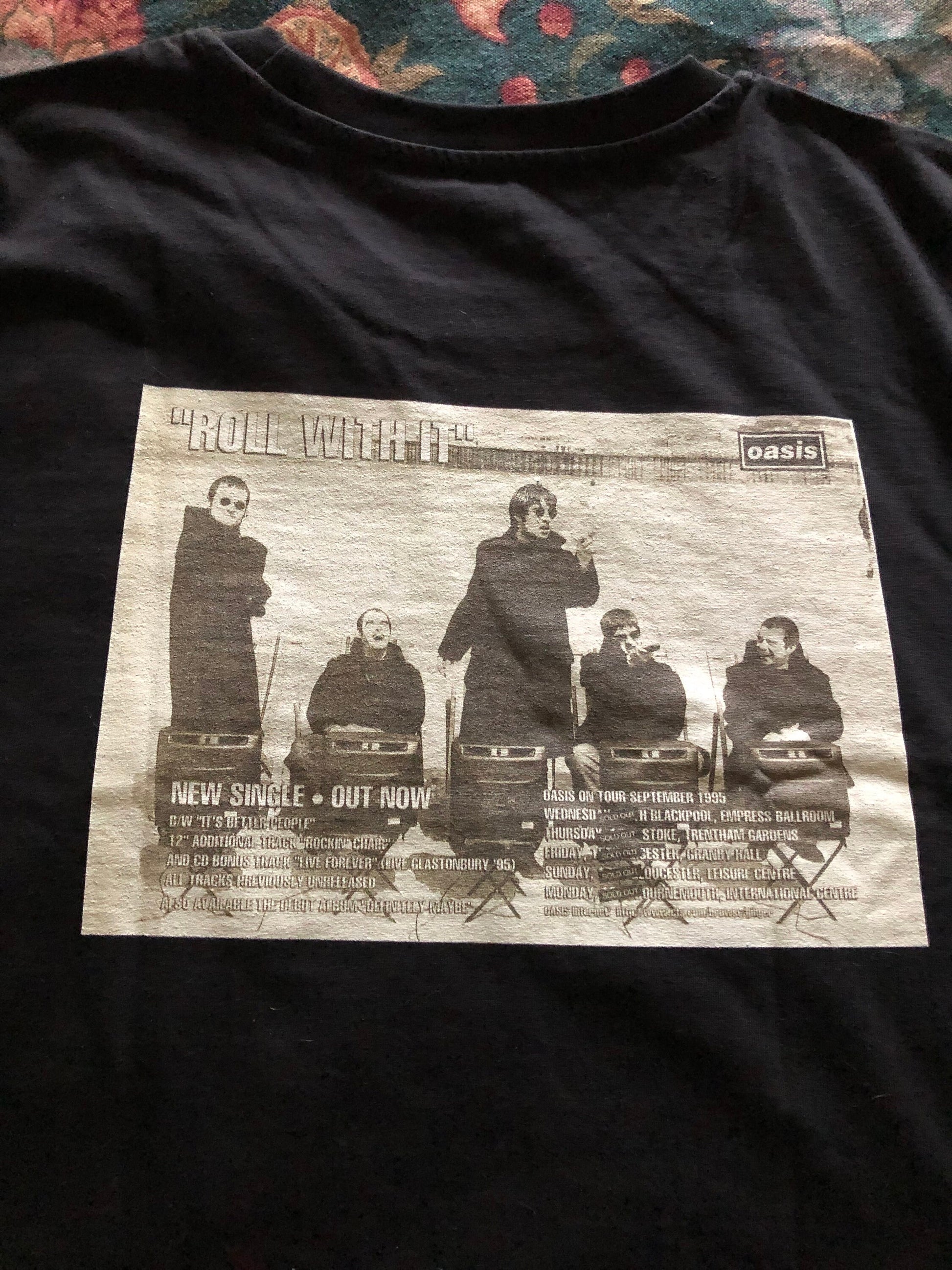 T SHIRT - Featuring a 13/9/1995 “ Roll with it tour” concert advert on the back , and a corresponding concert ticket on the front.