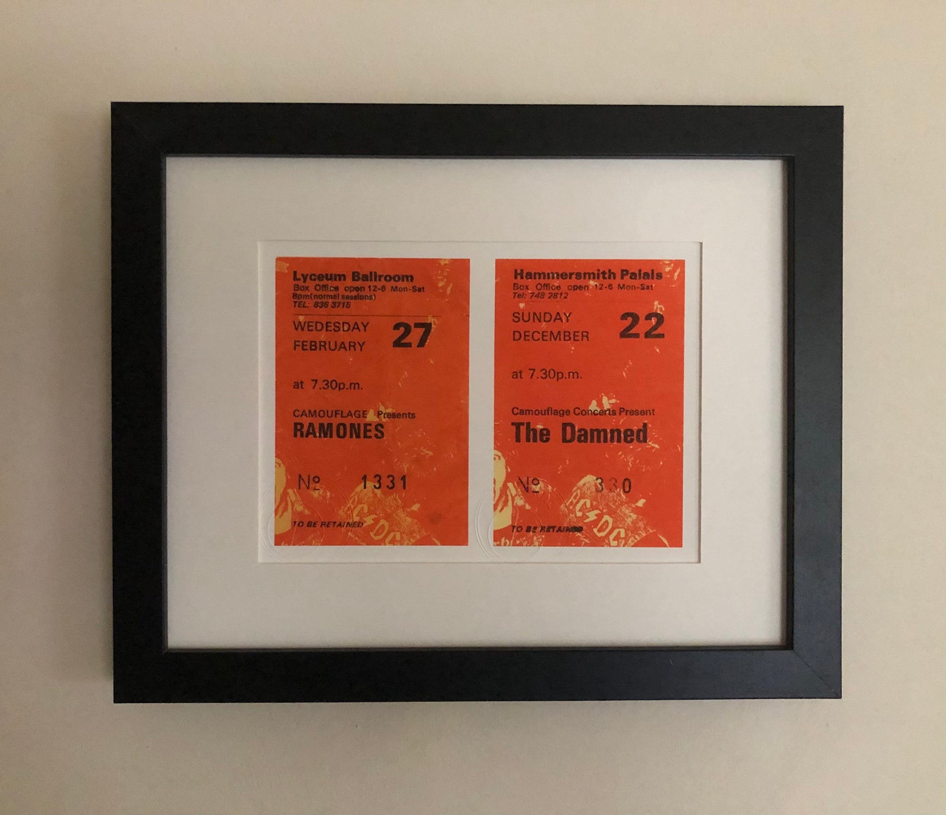 THE RAMONES / THE DAMNED - 1985 London shows framed ticket giclee print