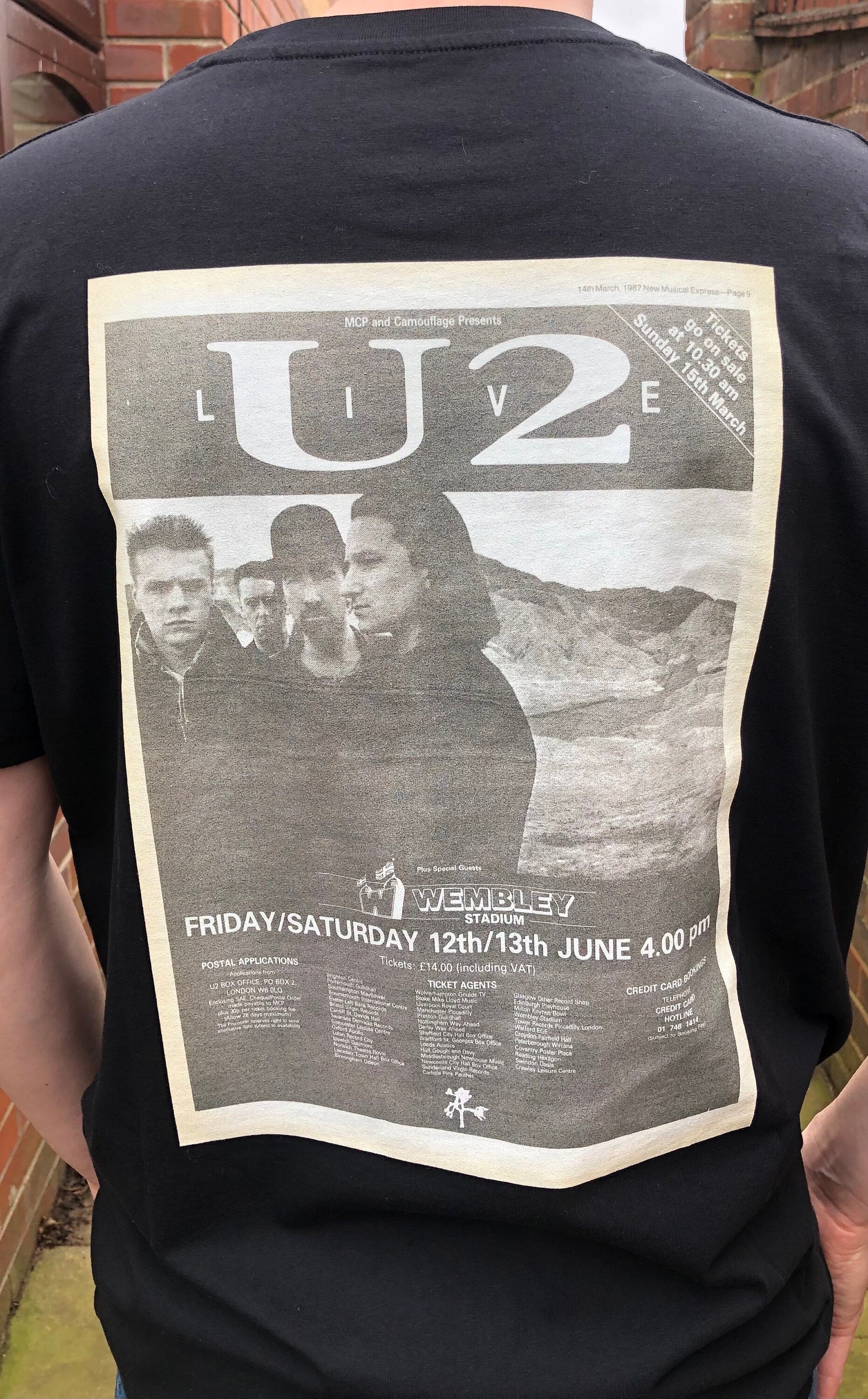 T SHIRT - Featuring a 1987 “ Joshua tree ” tour concert advert on the back , and a corresponding concert ticket on the front.